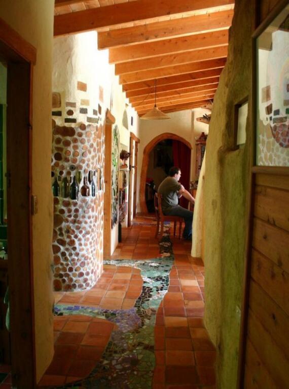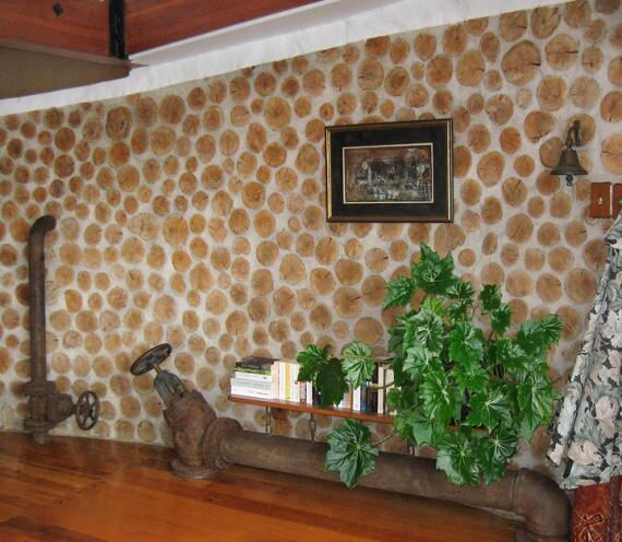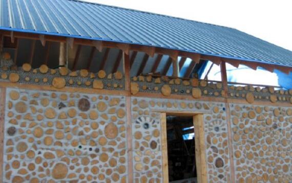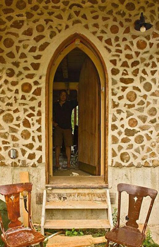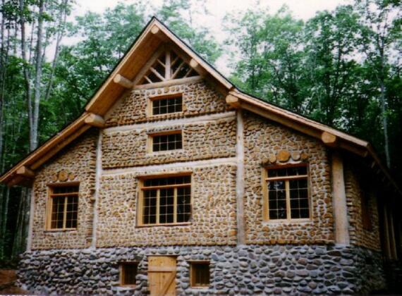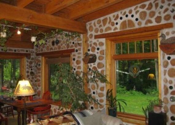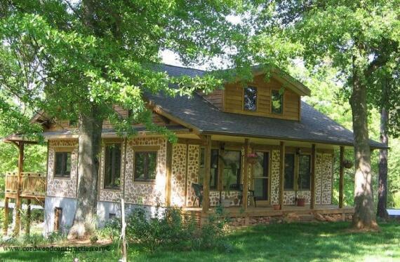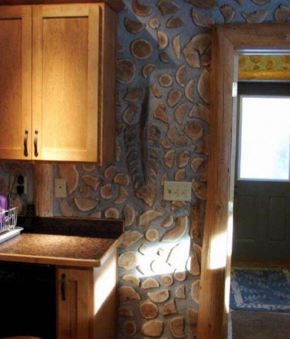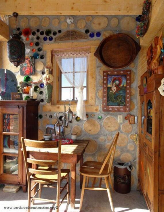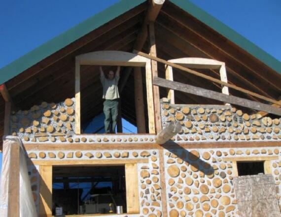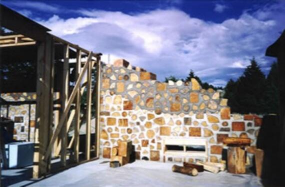 Здесь стены выложены из дров тополя. Для гидроизоляции использовали монтажную пену. Строитель Алан Адольфсон.