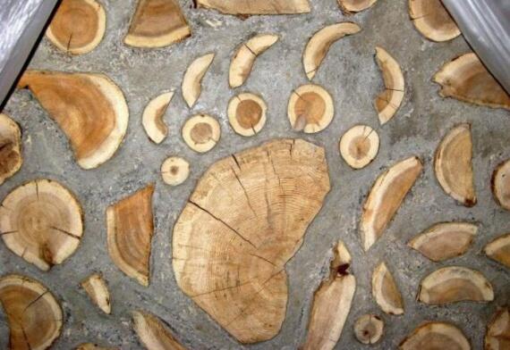 Интересные вставки из мозаики в дровяном доме.