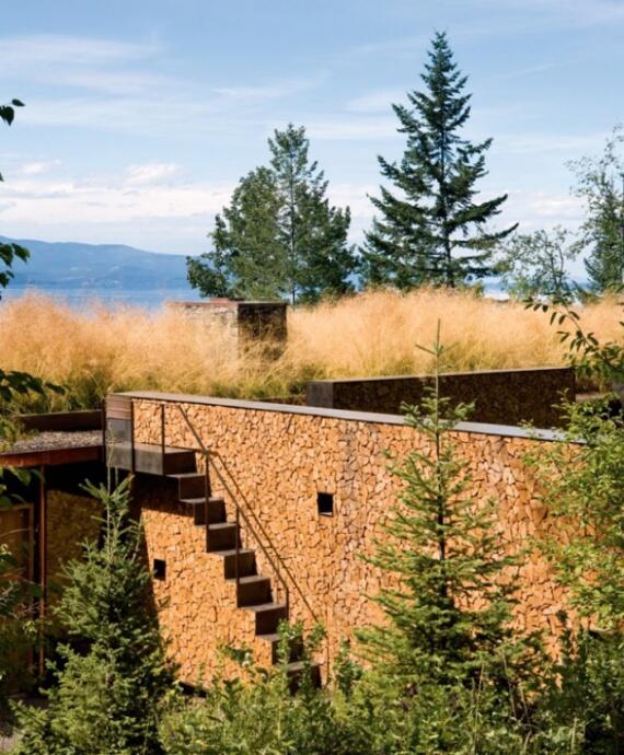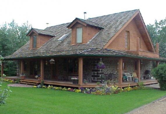 Дом из дров с террассой, Западная Канада.