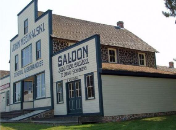 Mecikalski магазин, построенный в 1900 году в Дженнингс, штат Висконсин. Были использованы 45-сантиметровые дрова кедра.