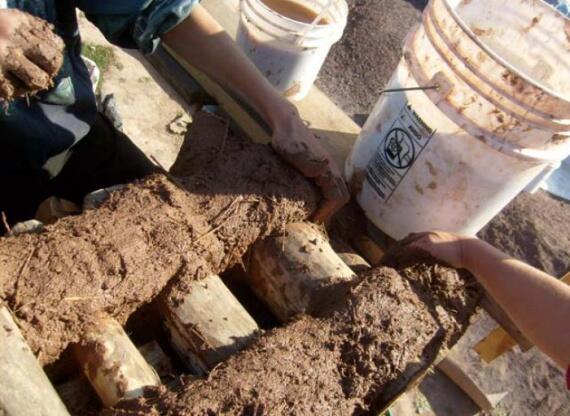 Для строительного раствора в равных долях добавляют глину, песок, опилки, известь и сухой навоз. ![]()