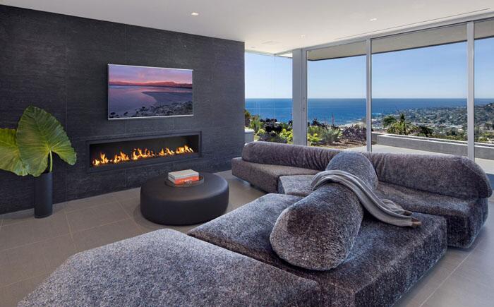 Панорамные виды из шикарной гостиной просто поражают воображение благодаря выходу на террасу и огромным окнам от пола до потолка. Дизайнеры из австралийской студии JAM Architects постарались максимально открыть пространство, сохранив при этом возможность уединения.
