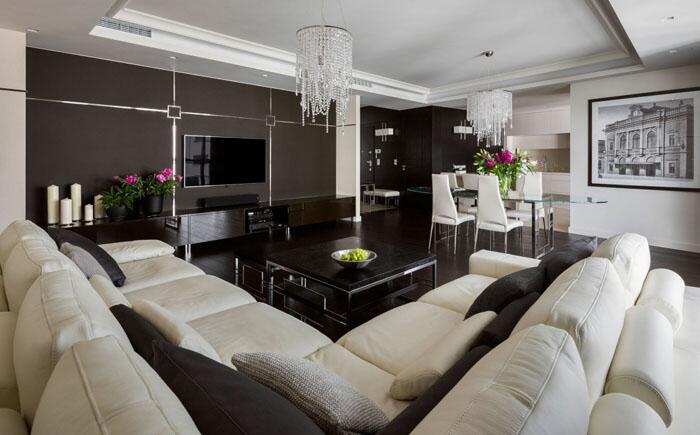 Апартаменты Sunset Strip отличаются простотой интерьера и его декора. Гостиная выглядит сдержанной, но от этого она не стала скучной.
