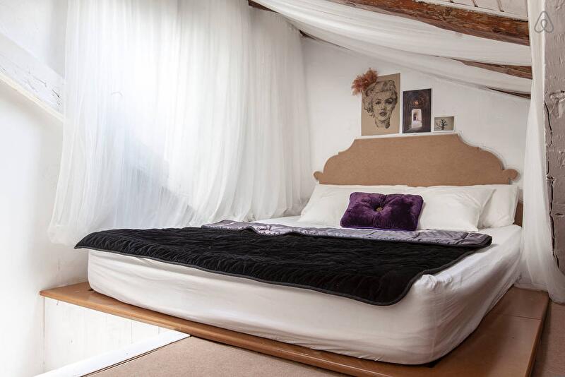 15. Спальня из разряда "как поместиться в комнате высотой 100 см". )![]()