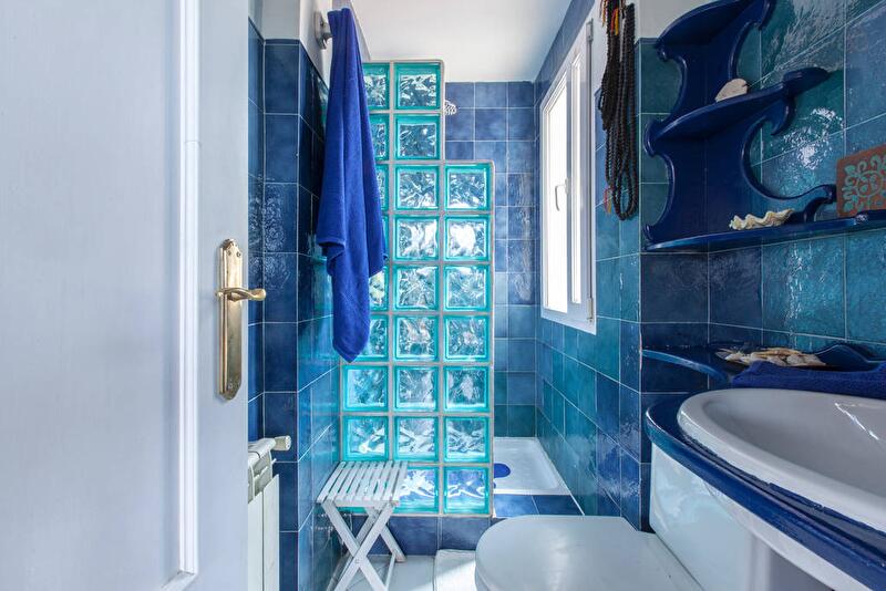 16. Ванная в холодном синем цвете, чтобы в жару прохладнее казалось.