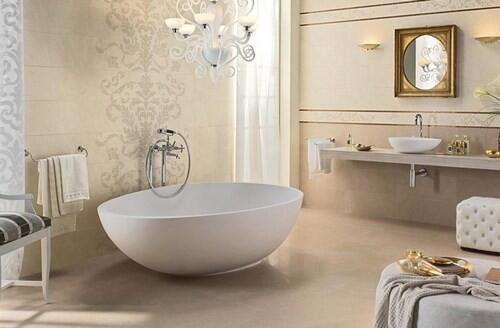 Лиловые акценты в бежевом интерьере, плитка Love Ceramic Tiles