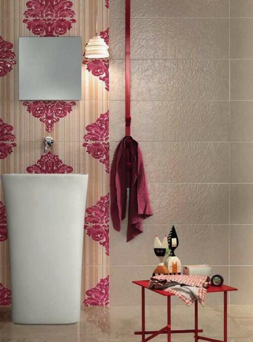 Бардовые акценты на фоне бежевой плитки от Impronta Ceramiche, Italgraniti Group