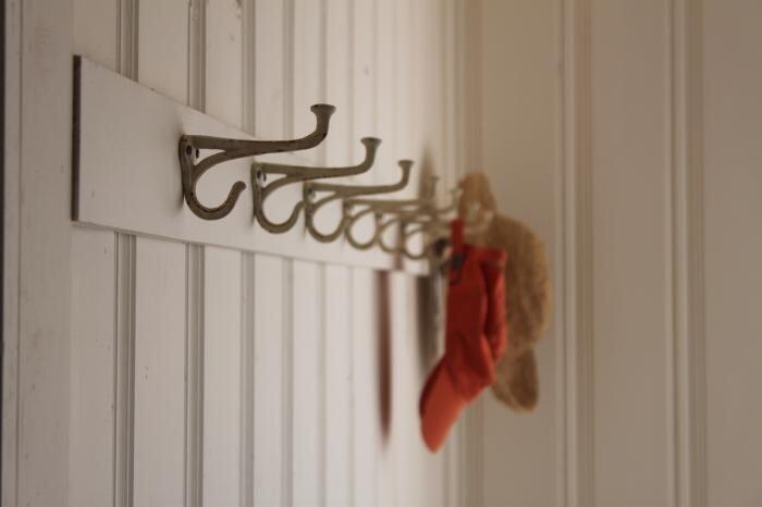 Первое решение, которое приходит в голову – крючки. В продуманном интерьере даже правильно забитый в стену гвоздь сойдет за креативный элемент. Но для этих целей лучше приобрести специальные крючки. На них можно вешать верхнюю одежду, зонты или сумки. Из цветного пластика или кованого железа, современные крючки для прихожих способны украсить прихожую, сделав ее при этом более удобной. Крючки могут быть как отдельно висящими (тогда под каждый крючок необходимо сверлить дирку), так и прибитыми к планке (в таком случае, нужно сделать только пару дырок).