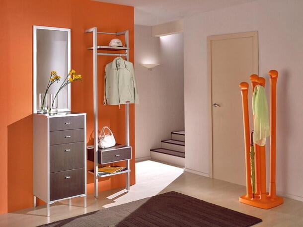 Вешалки — очень простой и удобный метод хранения вещей. Если планировка прихожей позволяет выделить под меблировку целый угол, то в нем можно поставить напольную вешалку. Часто в прихожей используется настенная вешалка, иногда она идет в комплекте с полкой. Над крючками для одежды располагается удобная решётка или полка, на которую складывают головные уборы, а подчас и шарфы, и другие предметы одежды. Вешалки делают из всех пригодных для этого материалов: из металла и пластика, из дерева и комбинации материалов. Выбор зачастую зависит от дизайна помещения.