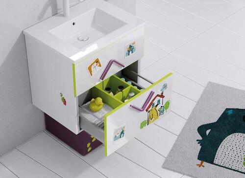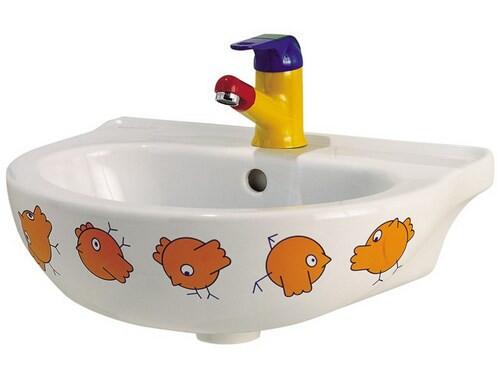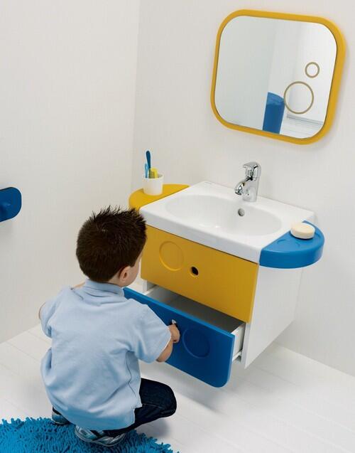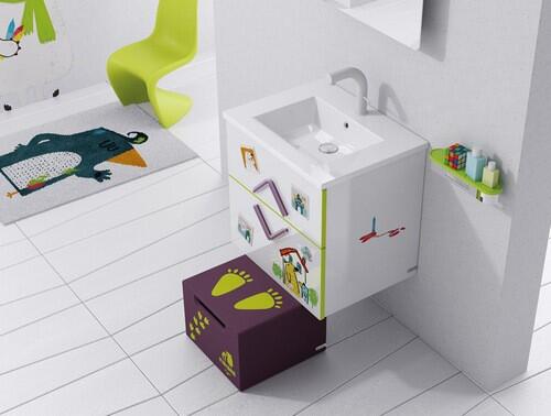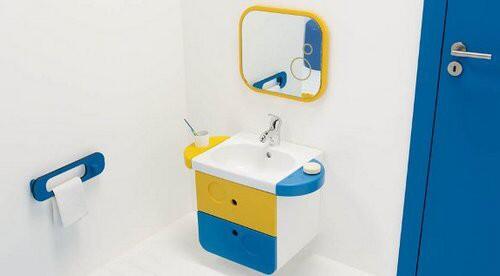 В коллекциях многих производителей можно найти специализированные линейки детской сантехники, которые рассчитаны на невысокий рост юных пользователей. Производители обычно учитывают и повышенные требования к безопасности, например, устанавливают специальные фиксаторы на дверцах шкафчиков, скругляют углы и т.п.