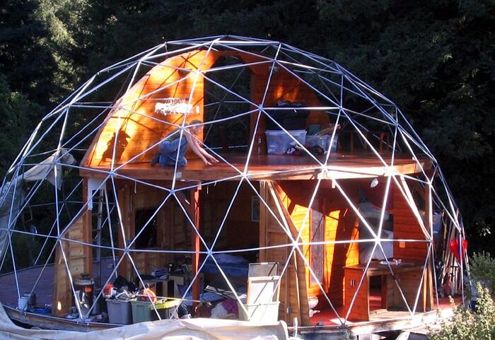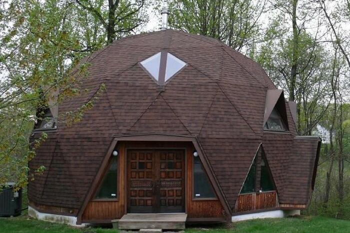 Оригинальный жилой дом в виде геодезического купола. По статистике во время землетрясений обычные прямоугольные дома разрушаются, а купольные остаются нетронутыми. Многие удивляются: почему. Ученые связывают этот момент с формой составляющих элементов купола – треугольником. В отличие от четырехугольных форм во время вибраций он практически не поддается деформации.