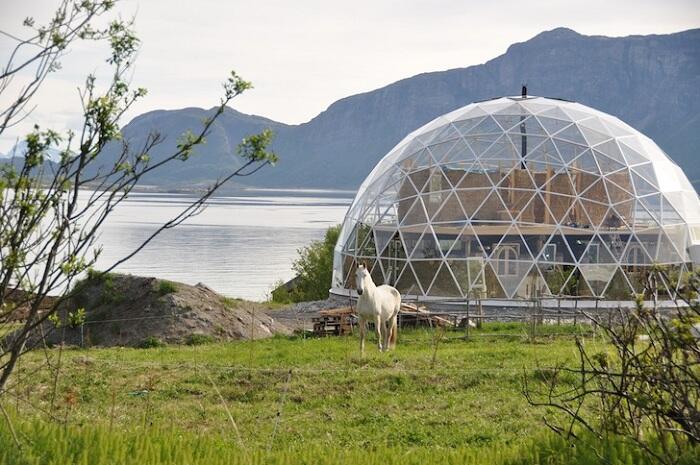 Дизайнерский купольный домик из прозрачного стекла. И в завершение можно отметить, что купольные домики выглядят просто потрясающе.