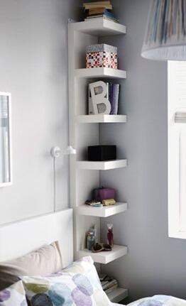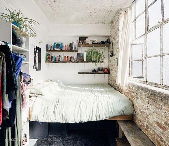 Весна — это время избавляться от лишнего, так что пересмотрите вещи, которые вы храните в спальне, и оставьте лишь то, что вам действительно нужно. А для хранения нужного отлично подойдут полки, расположенные в углу: даже в самой маленькой спальне можно позволить себе такой стеллаж.