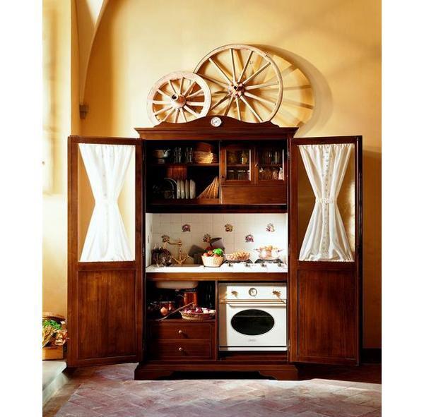 Однако компактные решения найдутся не только для поклонников современного дизайна. За деревянным фасадом обычного, казалось бы, шкафа может скрываться мини-кухня, оснащенная всем необходимым, от мойки до холодильника.