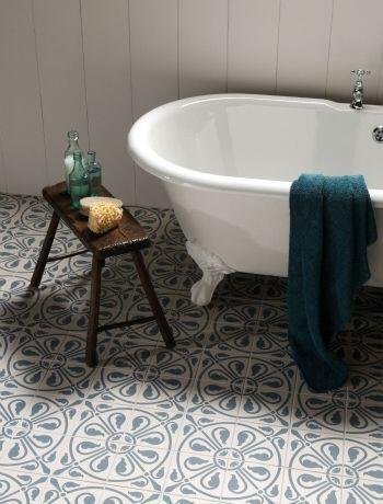 Поверх такого пола обычно кладут керамическую плитку. Если вы сами умеете укладывать ее ровно и надежно, то без страха и сомнений приступайте к монтажу. Плитку лучше всего выбрать из старых коллекций, с существенной скидкой.