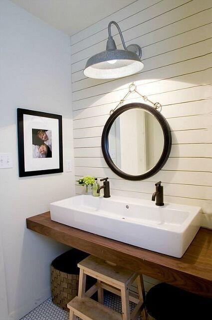 Если вы – за индустриальный дизайн или ретрооформление, выбирайте уличные влагозащищенные светильники или промышленные бра и подвесы (те, что подходят для влажных помещений). Лампы с жестяным абажуром или металлической решеткой отечественного производства стоят смешных денег, а смотрятся стильно и неожиданно. Пример использования – в проекте от молодых российских дизайнеров.