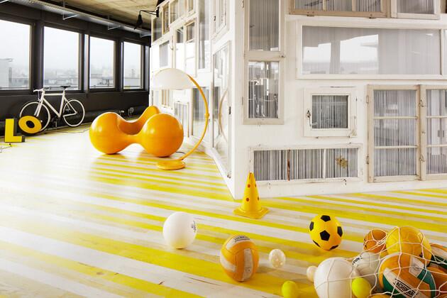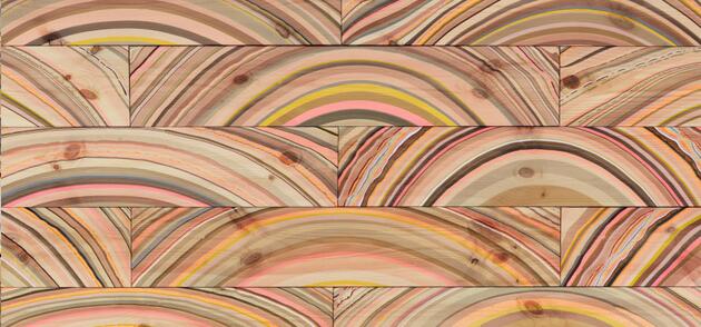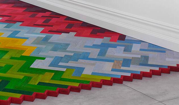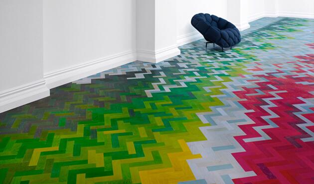 8. Вдохновением для дизайнеров студии Alkalay & Mer при создании их коллекции разноцветного паркета послужил текстиль. Покрытие Wall-to-Wall действительно напоминает трикотажное полотно или большой разноцветный ковер. Всего в палитре паркета использовано 15 оттенков, большинство их них – яркие и сочные, причем переплетаются они в характерной для тканей манере. Из разноцветных плашек даже можно выкладывать узоры – точь в точь как на коврах, только в слегка увеличенном размере «стежков».