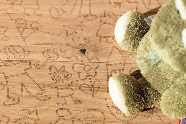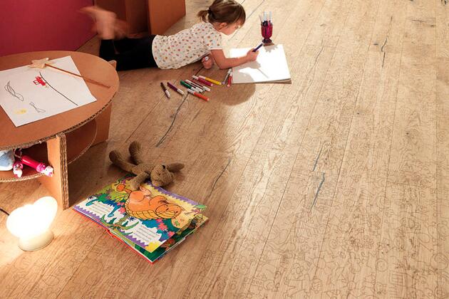 6. Каждый человек индивидуален, а потому заслуживает личного жизненного пространства – именно под таким девизом австрийский производитель паркетных полов Mafi создает свои шедевры. Он предлагает нам еще способ продлить детство в интерьере. Паркетная доска из коллекции Carving демонстрирует не только естественную красоту древесины, но и нанесенный лазером специальный рисунок. Теперь не придется ругать ребенка за то, что он разукрасил пол фломастерами!