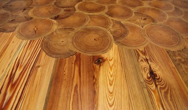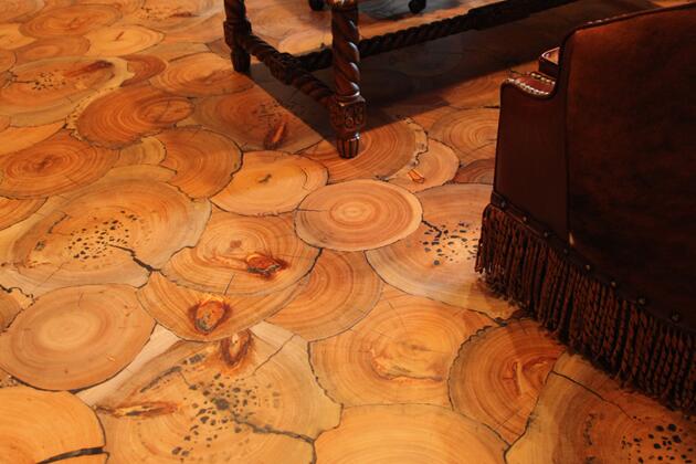 7. Из всех видов распила дерева, используемых при изготовлении материала для напольных покрытий, поперечный используется реже всего. А если точнее- то практически никогда: вы где-то видели паркет, состоящий из круглых плашек? Если нет, то мы вам покажем, ведь именно такой паркет создала американская компания Precision Floorcrafters. Примечательно то, что необычные по форм и фактуре элементы легко стыкуются с традиционными, позволяя создавать комфортный для вашего визуального восприятия компромисс между классикой и инновацией.