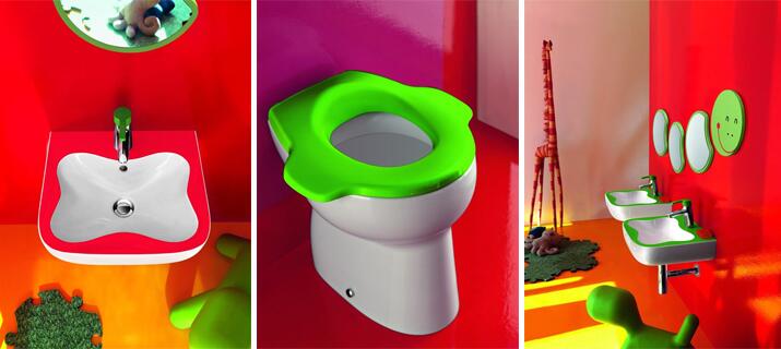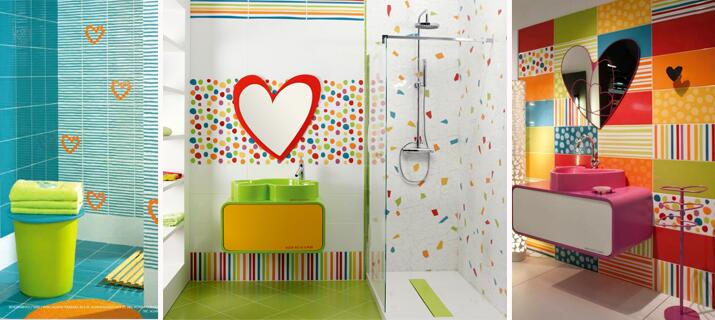 Испанский дизайнер Agatha Ruiz широко известна своим жизнеутверждающим дизайном. Не обошла она и тему обустройства детских санузлов, разработав несколько коллекций керамической плитки и сантехники Agatha для фабрики Pamesa. Тут вам и сердечки, и полоски, и горох – одним словом, полный рай для подрастающего поколения, для которого мир пока видится в самых ярких красах и рисунках. А задача родителей – сделать так, чтобы это виденье сохранилось как можно дольше.