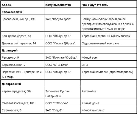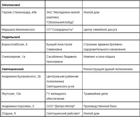 На следующую сессию, которая состоится 26 октября, выносится 60 вопросов о передаче земельных участков и 22 – о продаже. "Эта сессия имеет все основания превратиться в очередной дерибан", – предупреждает общественная организация "Голос громади Києва". Активисты ГГК обнародовали повестку дня грядущей сессии и пообещали впредь регулярно знакомить горожан с планами властей по "дерибану" имущества общины. Ниже приведен список участков, на которых запланировано новое строительство. В их числе – и "тыл" Русановских садов (кирпичный завод на ул. Сагайдака).