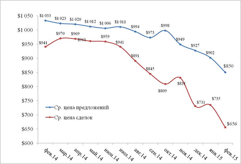 “Как действует среднестатистический собственник? Он считает, что ему нужно получить за квартиру определенную сумму, а реальная рыночная цена объекта, равно как и мнение покупателя, продавцов, чаще всего, не интересуют. То есть позиция большинства собственников, как правило, такова: "На любой товар есть покупатель, кому надо – тот купит”. Есть и другие продавцы, которые понимают, что происходит на рынке недвижимости и идут навстречу покупателям. Но даже в этом случае при всей здравости подхода есть сложность – продавец ориентируется на цену, которую указывают открытые источники, то есть те самые собственники, которые чаще всего действуют с позиции «Кому надо – тот купит». В результате возникает разница между желаемой ценой и реальной, той, которую сегодня готов дать рынок. Средняя цена сделок в феврале 2015 года составила 650 долларов за квадратный метр, т.е. на 200 долларов меньше средней цены предложения. При этом неправильно говорить о большом размере торга – если торг в мае 2014 составлял 8,4%, то сейчас он снизился до 4%”, – рассказывает Правдин.