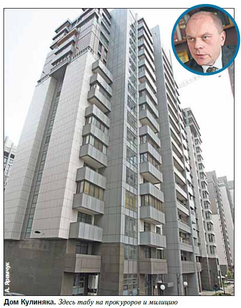 Первое, что бросается в глаза в элитном квартале, — низко пролетающие самолеты. "Идут на посадку в Жуляны!" — с гордостью поясняет один из руководителей местной охраны. В день нашего приезда в квартире Кулиняка на звонки никто не отзывался. На первом этаже в подъезде висит памятка для охранников: жирными буквами написано, что в этом доме действует табу на распространение информации о жильцах для журналистов, милиционеров, прокуроров и прочих интересующихся.