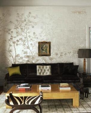 Опять же, на контрасте текстур основано использование атласных элементов в обоях для стен: игра света достигается путем чередование матовых и глянцевых деталей, отчего стены словно оживают.
