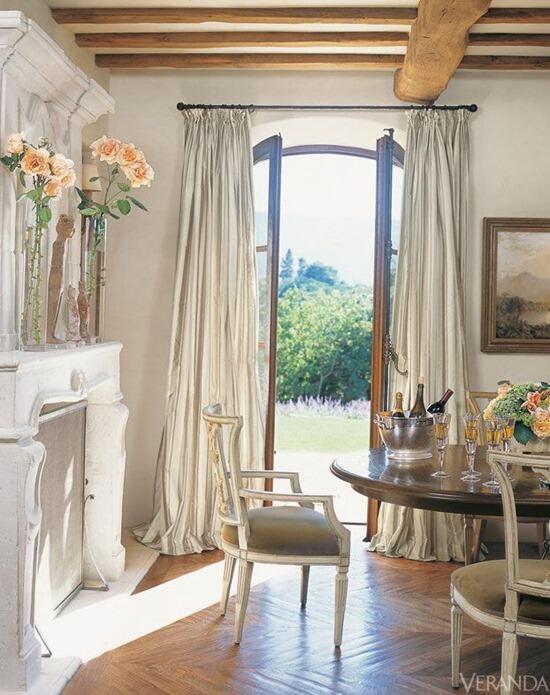 Тяжелые, струящиеся, многослойные и драпированные шторы с атласным отливом будут уместны далеко не в любом интерьере, однако своим присутствием способны превратить тривиальную комнату в стиле прованс в элегантные апартаменты в духе французской классики.