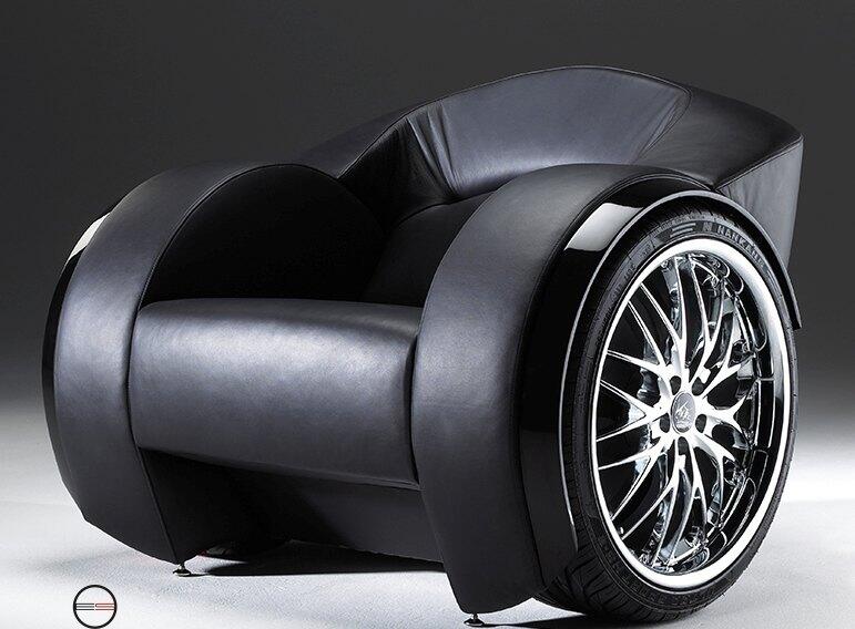 Автомобілі так проникли в наше сьогодення, що навіть дизайнери інтер"єрів все більше в розробці деталей інтер'єрів вдаються до автомобільної тематики, і якщо раніше такі ексклюзивні речі можна було побачити тільки в холі автосалону або тюнінг-центру, то зараз багато хто готові поставити автодиванчик або крісло на колесах у себе у вітальні. Крісло із шкіри з автомобільними колесами замість крісельних ніжок точно припаде до смаку любителям хай-теку. Крісла зроблені в Швеції командою дизайнерів «Перша Еволюція». При чому, компанія готова виготовити такі крісла по Вашим індивідуальним замовленням і запропонують вам вибрати колір оббивки і радіус коліс (18 або 19 дюймові).