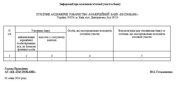 Додамо, що інформацію щодо структури власності АТ "КБ "ЕКСПОБАНК" розміщено на сайті банку та, відповідно до вимог законодавства, в інших відкритих джерелах. На дату останнього реєстру осіб, зазначених у запиті, серед переліку акціонерів немає.