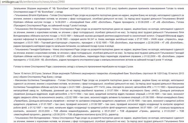 15 февраля 2013 года был уволен глава набсовета "Экспобанка" - Виталий Гетьманенко — сын председателя правления Юрия Гетьманенко.