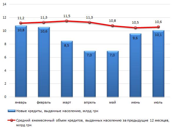 Среднемесячный объем выданных кредитов за предыдущие 12 месяцев на июль 2014 года составил 10,6 млрд гривен.