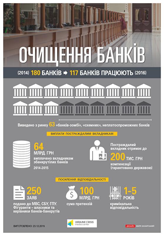 Украинский кризисный медиа-центр составил инфографику об очищении банковской системы страны.