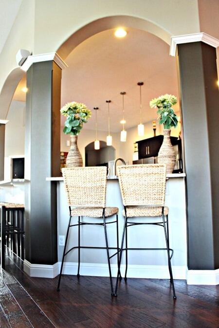 Основное из них – это экономия пространства: стойка в разы компактнее среднестатистического стола, но вмещает за собой не меньшее количество людей. При этом небольшая площадь столешницы и сам характер данного атрибута не предполагает тщательной сервировки, которая забирает много времени. Барная стойка дарит комнате атмосферу непринужденности – вот, что самое главное.