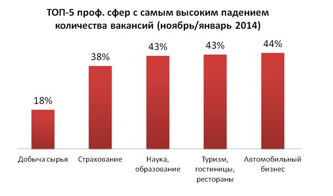 Наиболее заметно пострадали от кризиса такие проф. сферы: HoReCa, страхование, добыча сырья, наука и образование (здесь размещают вакансии преимущественно для преподавателей курсов и частных обучающих программ), автомобильный бизнес. ![]()