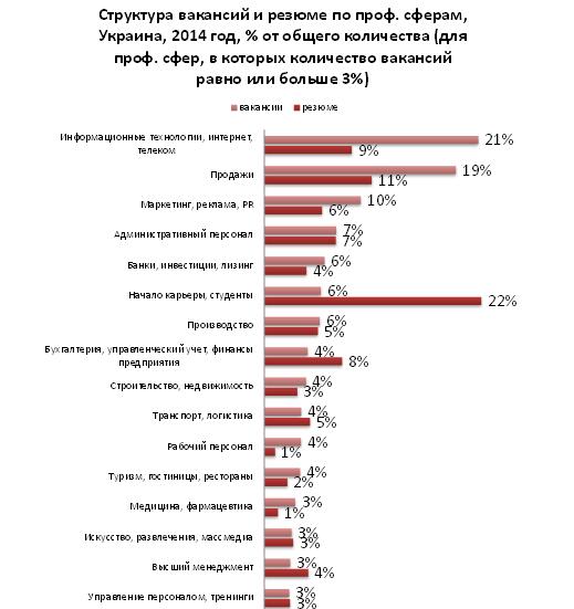 В 2014 году на Международном кадровом портале HeadHunter Украина было опубликовано 128 093 вакансий и 250 705 новых резюме (всего к концу года на сайте размещено 723 211 резюме).