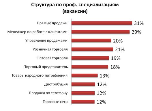 Чаще всего в сфере продаж востребованы специалисты по прямым продажам и работе с клиентами, руководители в сфере продаж. ![]()