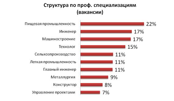 Конкуренция в этой проф. сфере по сравнению со средними показателями по Украине не высокая – около двух специалистов на одну вакансию. Чаще всего востребованы технологи и главные инженеры в пищевой и металлообрабатывающей сферах. ![]()