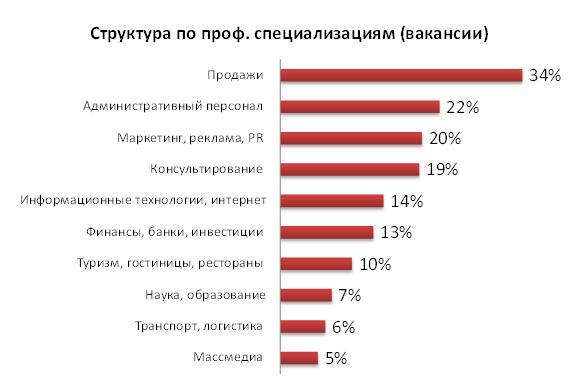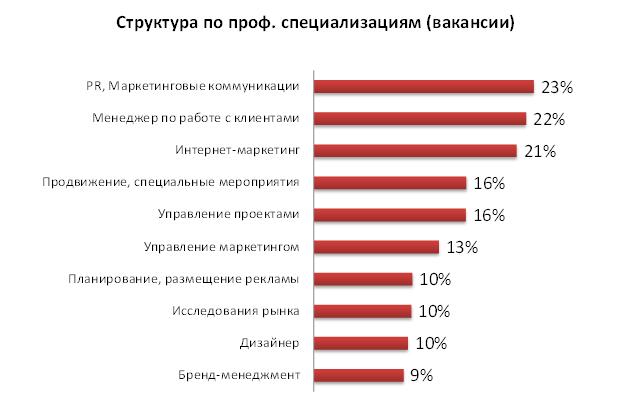 Активное развитие интернет-бизнеса и кризис в других отраслях привели к тому, что, несмотря на специализацию, большинство вакансий в проф. сфере подразумевают работу в интернет-маркетинге. ![]()