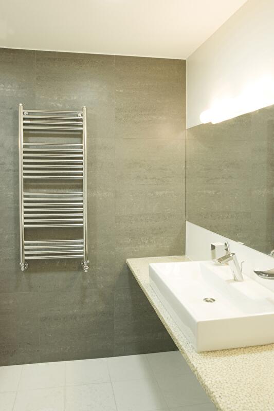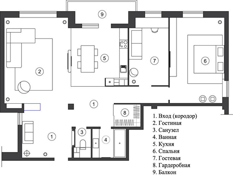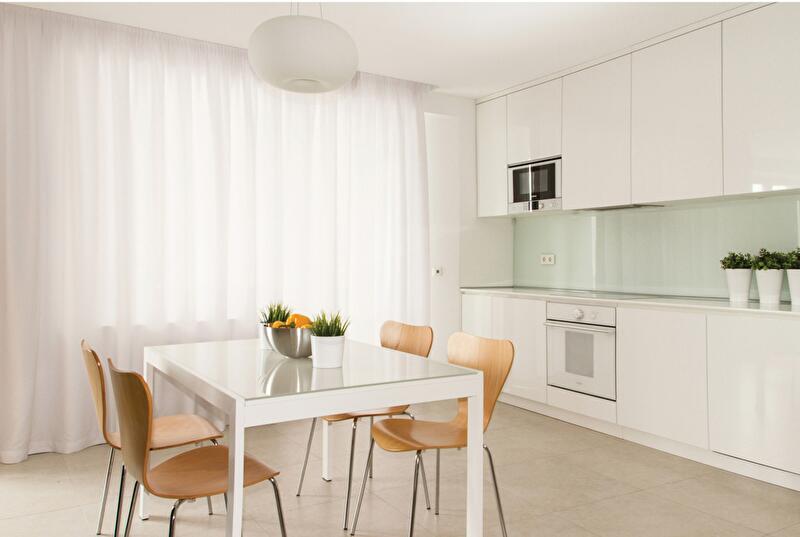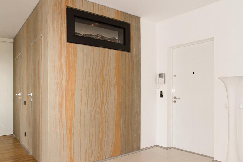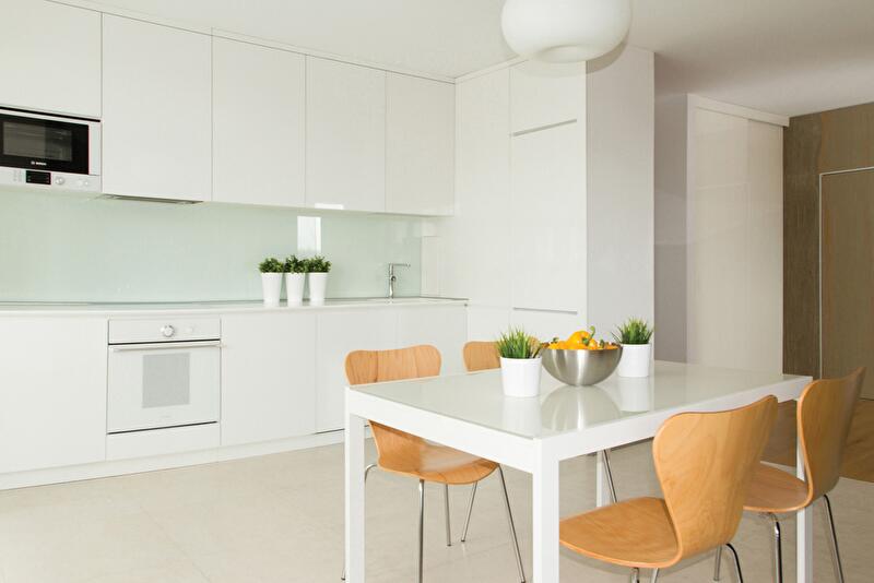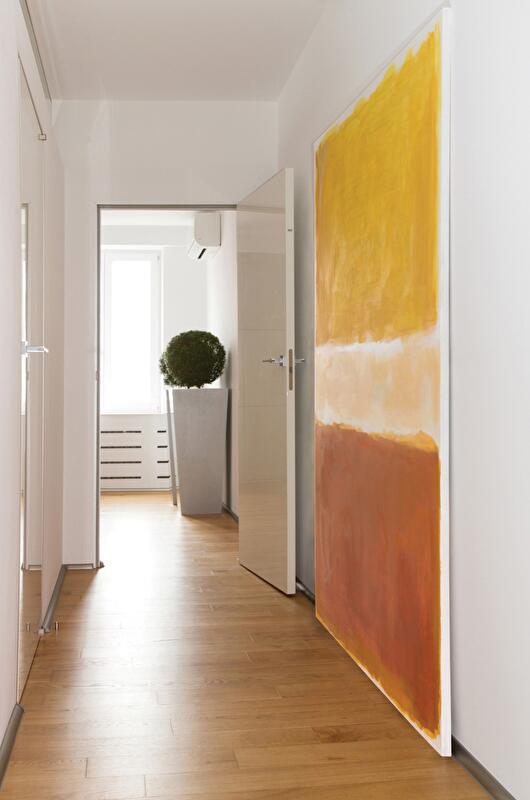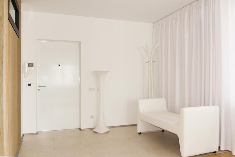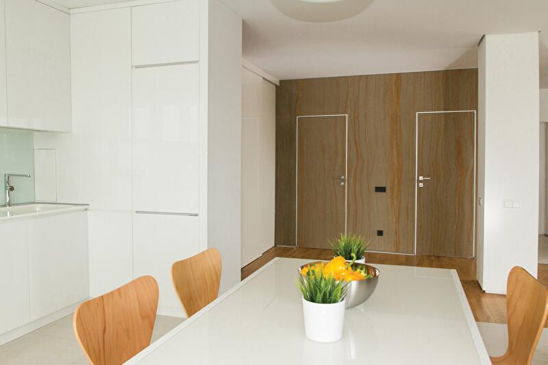 Интерьер оформлен с учетом потребностей и пожеланий двадцатилетнего студента, которому и принадлежит жилье. В силу своего возраста, заказчик оказался авантюристом, поэтому с первых минут доверился профессионалу и одобрил первый же эскиз, который дизайнер ему показал. Изюминкой проекта стала фитостена, которая зонирует кухню и гостиную. Она состоит из металлического каркаса обшитого гипсокартоном, сверху которого находится рулонное покрытие, имитирующее настоящую траву. Внутри конструкции спрятаны провода телевизоров, которые крепятся по обе стороны фитостены. Кроме того, яркий зеленый цвет разбавляет белый интерьер и является акцентом этого пространства. Полы в кухне подняли на 120 миллиметров, чтобы обозначить территорию приема и приготовления пищи. Справа от входной двери находится камин, его высота обусловлена соображениями безопасности. Панно за диваном - это ручная работа художника, с использованием 3D-покрытия, которое имитирует узоры на песке. В спальне за изголовьем кровати находятся панели из ГКЛ, которые напоминают бетон.