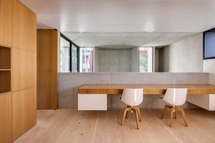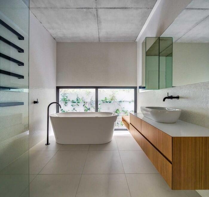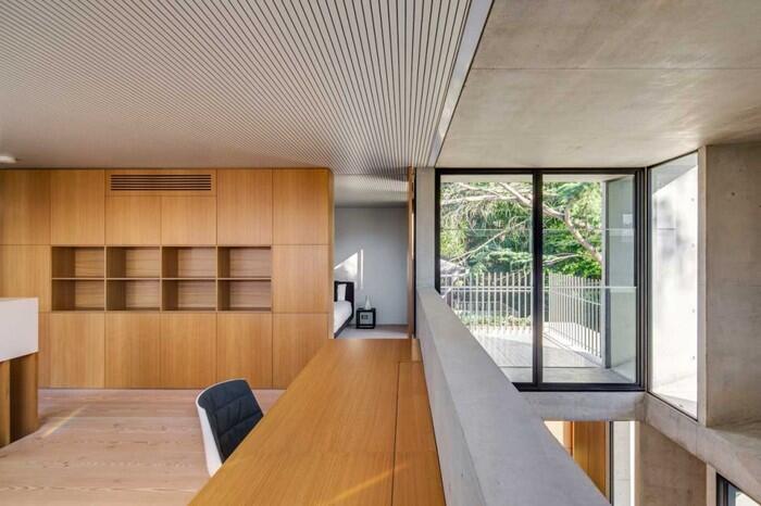 Узкие отверстия оригинального фасада переосмысливают пропорции и формы прежней структуры относительно нового периода. Акцент на вертикальные отверстия создает альянс с оригинальными оконными проемами викторианского дома.