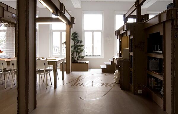 Юст ван Блейшвийк и Альрик Куденбюрг (Joost van Bleiswijk, Alrik Koudenburg) придумали, нарисовали, а потом собрали офис для компании Nothing. Они скрепили все детали без клея и других крепёжных материалов. Вместо них использовали систему пазов.