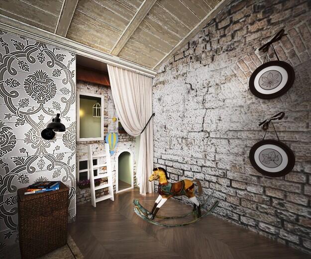 Главной задачей было добавить в жизнь хозяев спальни больше покоя. При этом второй этаж никаких особых возможностей для глобальной перестройки не давал, да и родителям было важно все-таки сохранить доступ в детскую. Поэтому стало ясно, что недостаток тишины придется компенсировать в первую очередь визуальным комфортом. Дерево, кирпич, узорные стены – все это было заложено в проект и хорошо видно в 3D-визуализации.