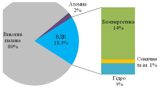 Місце відновлюваних джерел енергії та біомаси в енергобалансі України