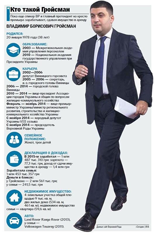 Главный претендент — спикер ВР Владимир Гройсман. По неофициальным данным, пока голосов для назначения недостаточно. А лидер Радикальной партии Олег Ляшко уже заявил, что его политическая сила не будет поддерживать Гройсмана из-за отсутствия у него конкретного плана действий. Однако эксперты единогласно заявляют, что голоса найдут и спикеру все-таки удастся поменять кресло. "Думаю, он сможет собрать нужное количество голосов. Если коалиция будет, то и Гройсман будет проголосован — 226 голосов для него не проблема. Проголосуют БПП, НФ и внефракционные", — считает политолог Вадим Карасев. Согласен с таким мнением и директор Украинского института анализа и менеджмента политики Руслан Бортник: "Если не будет никаких форс-мажоров, связанных с распределением министерских должностей, то Гройсман может собрать не 226 голосов, а больше 300". Если что-то пойдет не так и голосов не надут, то Арсений Яценюк останется в кресле с приставкой "и.о."