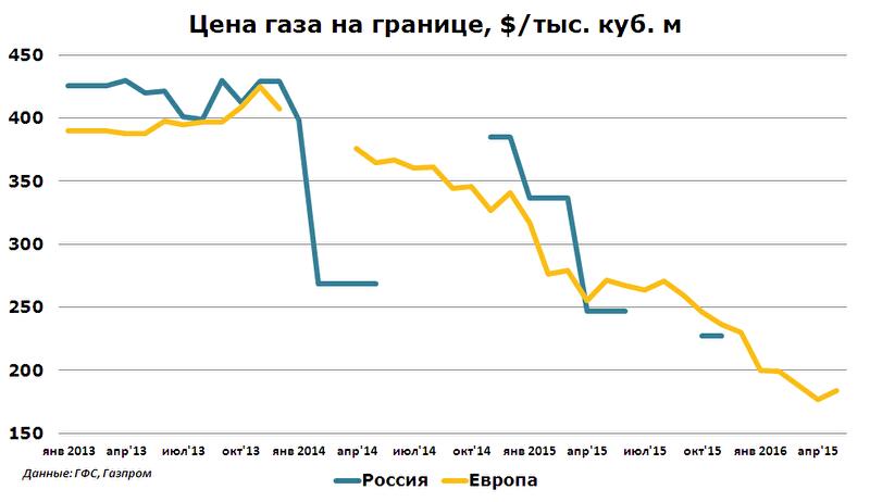 Одновременно начали снижаться цены на российский газ в связи с падением нефтяных котировок. Большинство долгосрочных контрактов Газпрома привязаны к цене на нефть.