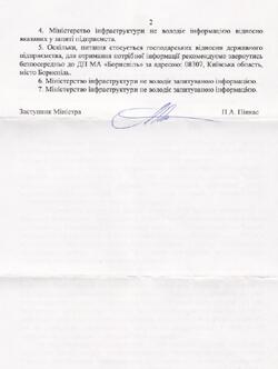 ОФИЦИАЛЬНЫЙ ОТВЕТ МИНИСТЕРСТВА ИНФРАСТРУКТУРЫ
