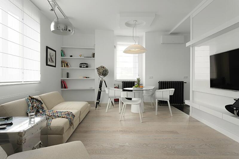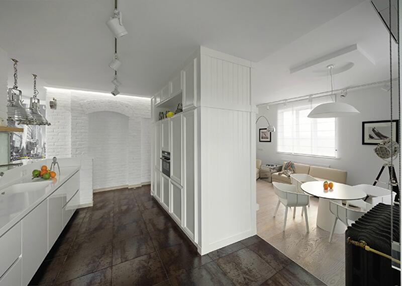 Так появилась полная монополия белого. Белый лишь хочет казаться простым, нейтральным и незаметным – на самом деле он абсолютно авторитарен. Контрасты, став основным изобразительным приемом, использованным в оформлении интерьера, сделали жизненное пространство легким, графичным и интересным по фактурам.