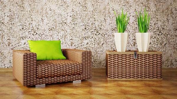 Натуральные обои . Обои из натуральных материалов выполняются из папирусного полотна или неотбеленной бумаги, на которых крепятся рейки из бамбука, тростника или камыша, волокна джута, листьев. Такая отделка используется в загородных домах, интерьерах в стиле рустик или кантри.